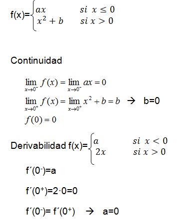 Calcular el valor de a y b para que la siguiente función sea continua y derivable.